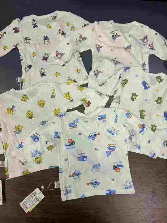 1000件工厂跑单货!新款纯棉卡通秋衣男女婴童宝宝打底衫睡衣空调衫T恤长袖内搭春秋款上衣!款式就是图片款!只是卡通图案大同小异!正面大卡通图案,背面小卡通图案印花!A类!100%纯棉!一包5件装!一个尺码66,货品干净,零瑕疵!