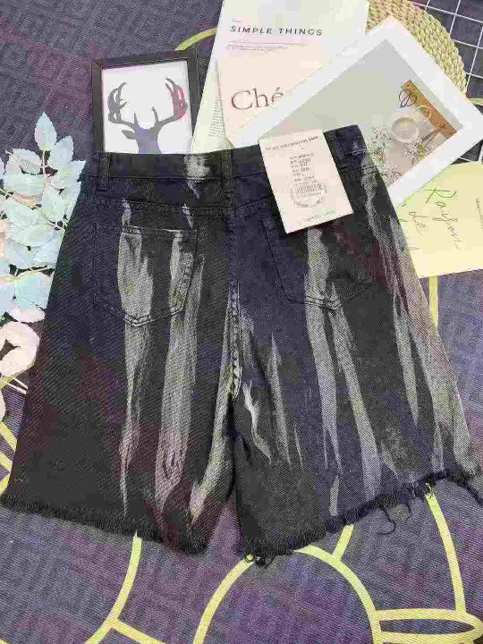 ☕️个性扎染牛仔五分裤440条全清8.8元,码数S M L ,独立包装。牛仔直筒港味夏季新款网红高腰扎染设计感不规则中裤