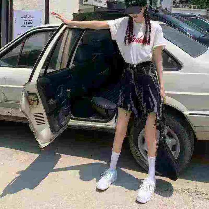 ☕️个性扎染牛仔五分裤440条全清8.8元,码数S M L ,独立包装。牛仔直筒港味夏季新款网红高腰扎染设计感不规则中裤