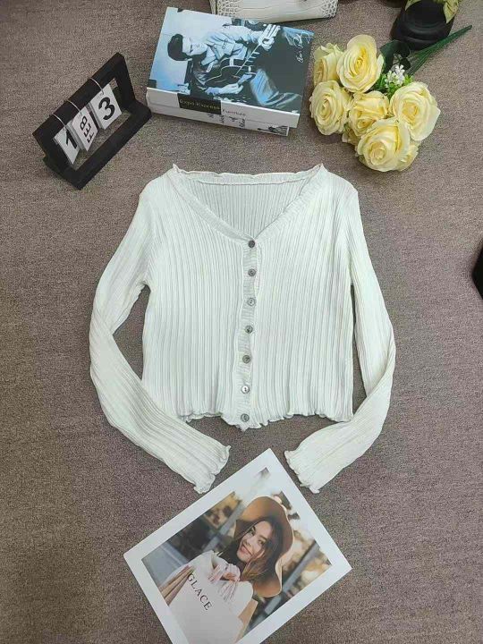 2025新款韩版百搭木耳边短款长袖针织开衫外套,独立包装,五个颜色,830件左右,清7.8,分➕1