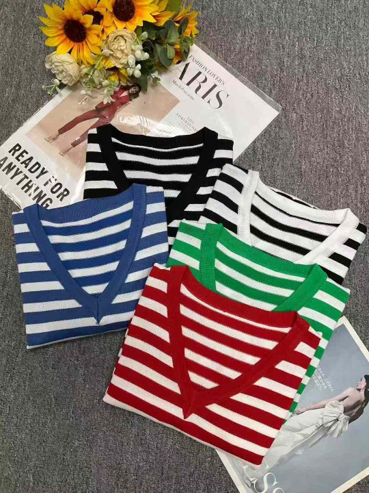 夏季新款撞色条纹V领宽松百搭针织T桖,独立包装,均码面料软糯舒适弹力大,1530件,全清5.9元超低价秒杀!分货加一!