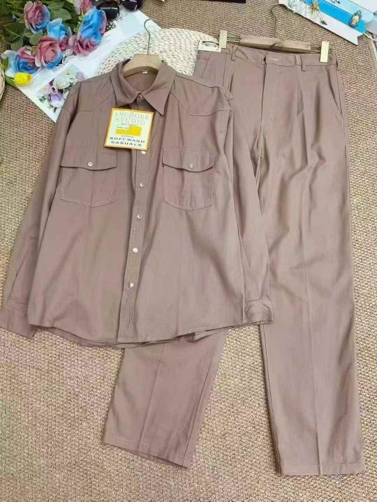 男装洗水棉工装长袖衬衫套装,数量:1700套,码数:(上衣码:L-裤子码30-32)-(上衣码XL-裤子码34-36-38),有独立包装,14.9元清