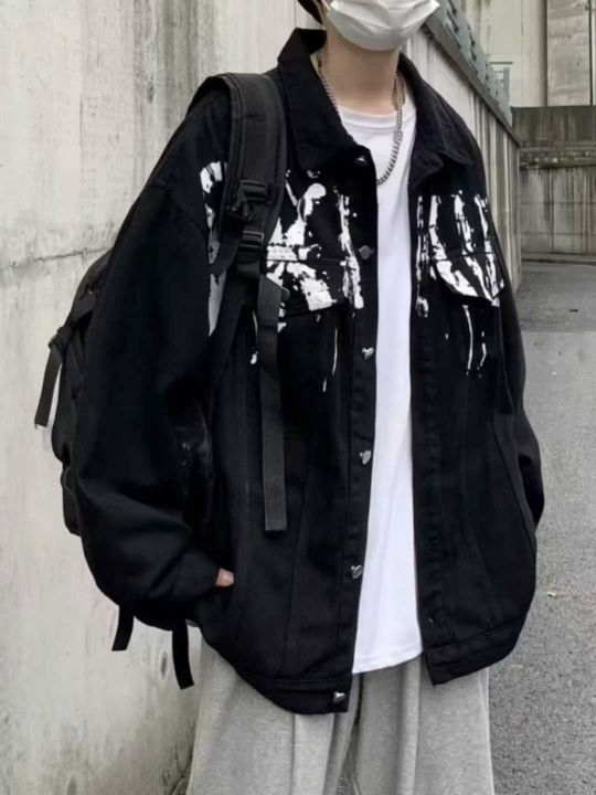 小众设计春秋季黑色牛仔外套男款复古宽松夹克400件,独立拉链袋包装,货品...