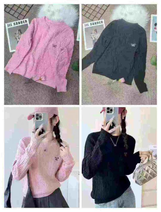 蝴蝶刺绣圆领套头毛衣女长袖春秋保暖打底小颗粒绒针织衫,独立包装,均码,430件,清7.9,分➕1