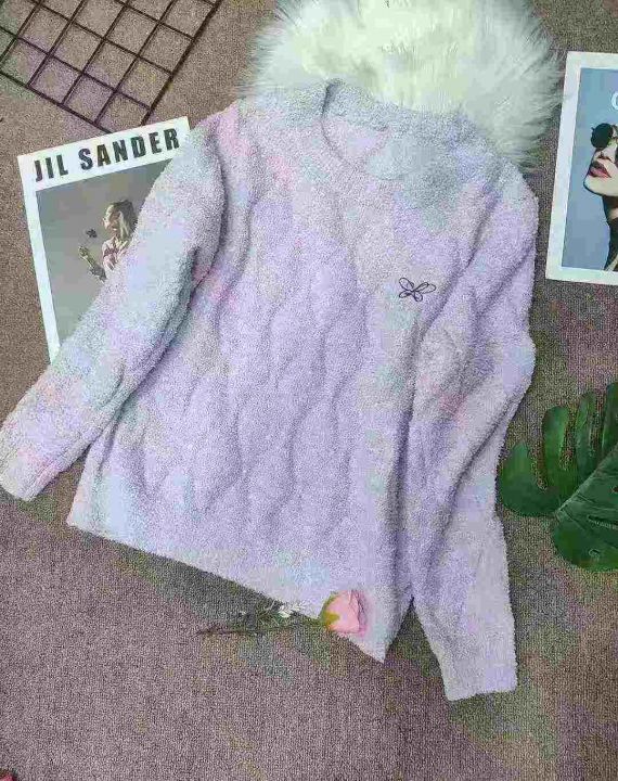 蝴蝶刺绣圆领套头毛衣女长袖春秋保暖打底小颗粒绒针织衫,独立包装,均码,430件,清7.9,分➕1