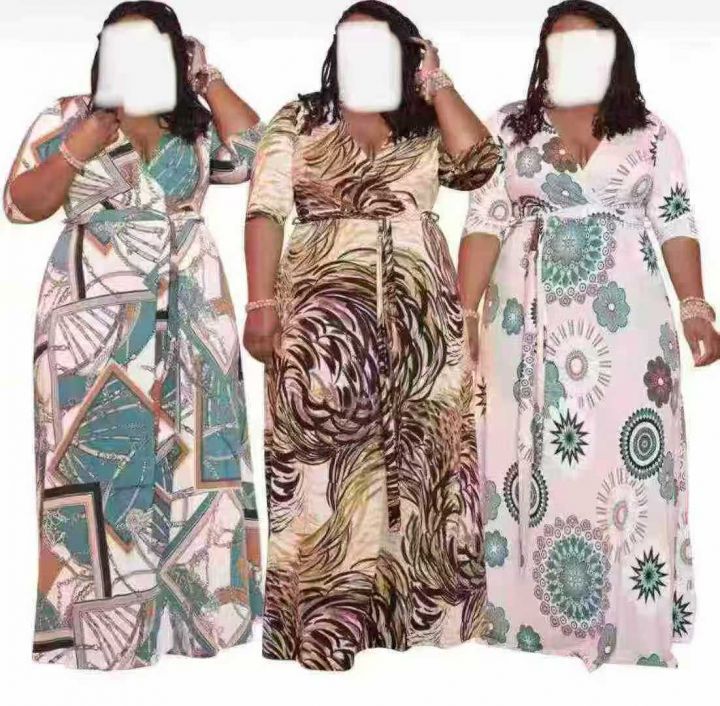 高弹力大码连衣裙大长裙系列款 颜色花型多样 S-5XL原包装 还剩1 万件左右 仓库现货