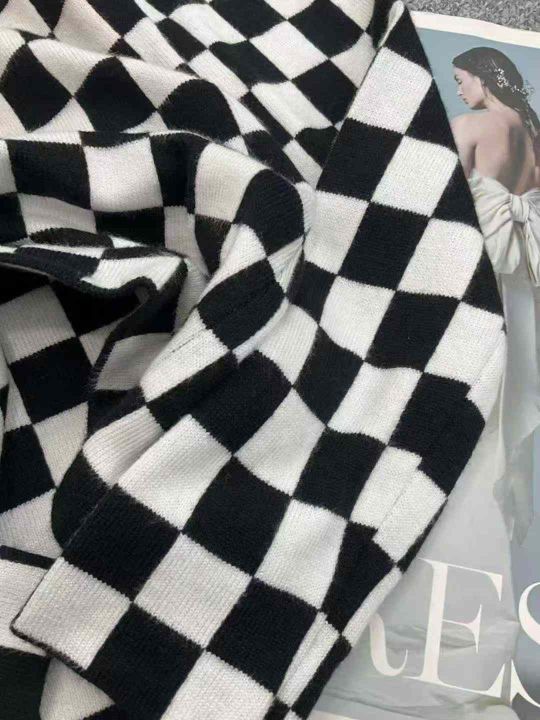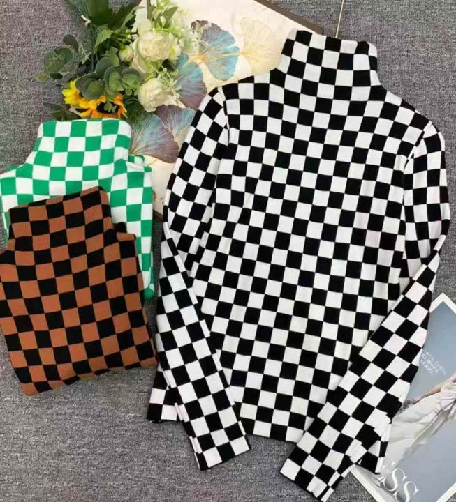 秋冬新款高品质欧洲站复古棋盘格拼色高领弹力修身显瘦包芯纱套头毛衣,独立包装,均码面料软糯舒适弹力大,2170件,腾仓库,全清5.9元亏本处理!