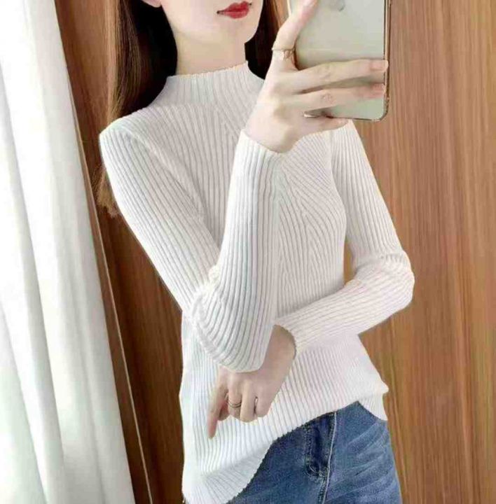 秋冬新款半高领高弹力修身显瘦包芯纱套头毛衣,独立包...