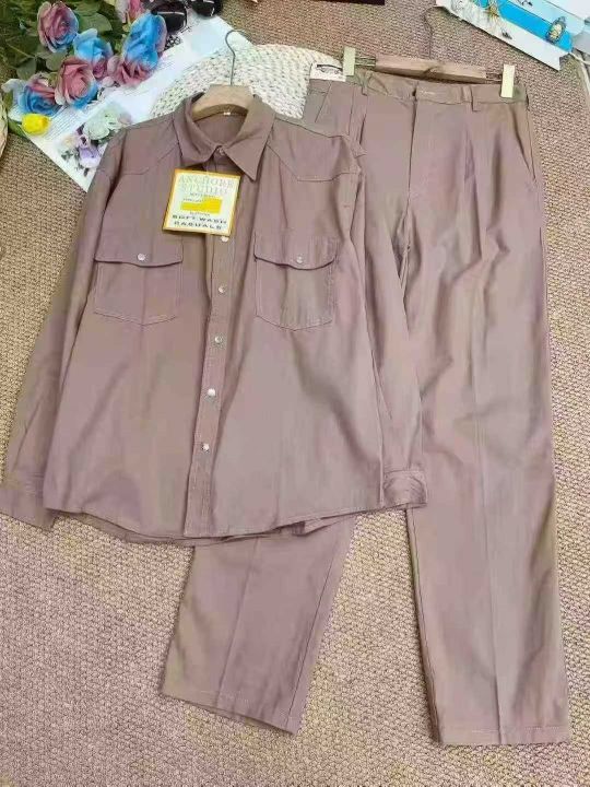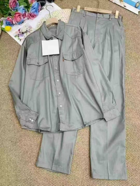 男装洗水棉工装长袖衬衫套装,数量:1700套,码数:(上衣码:L-裤子码30-32)-(上衣码XL-裤子码34-36-38),有独立包装,14.9元清