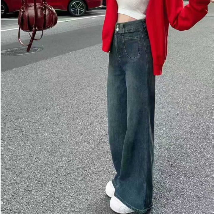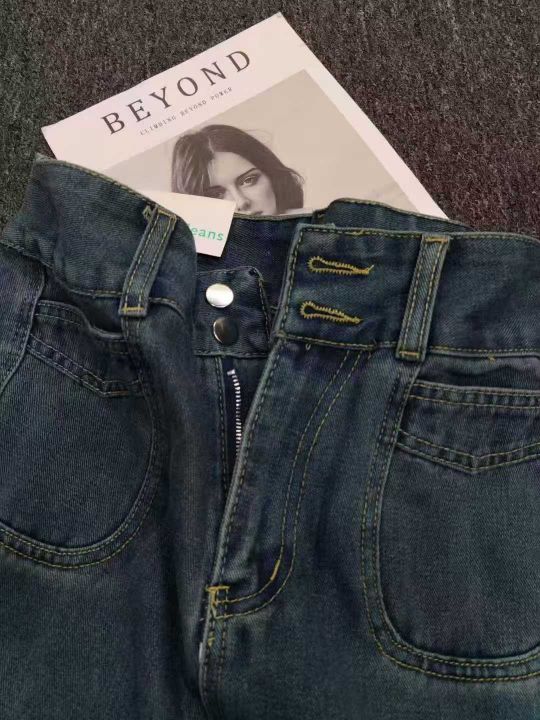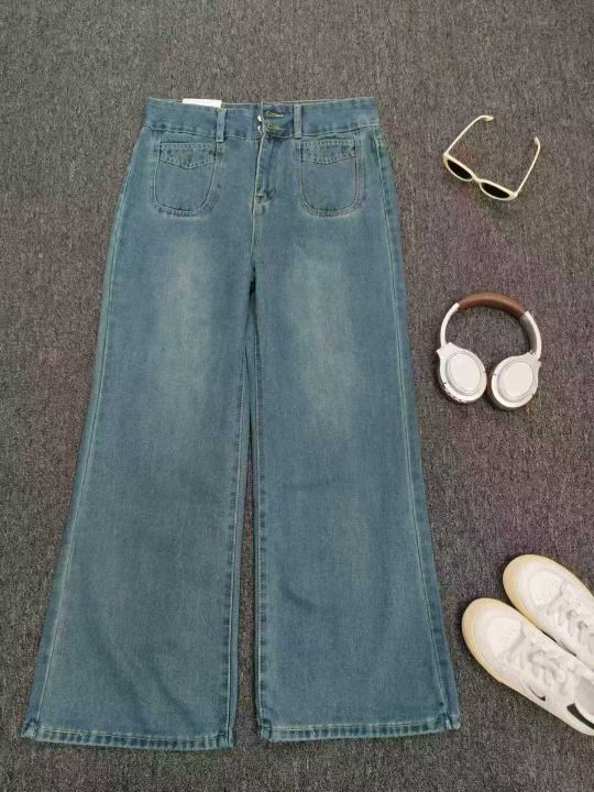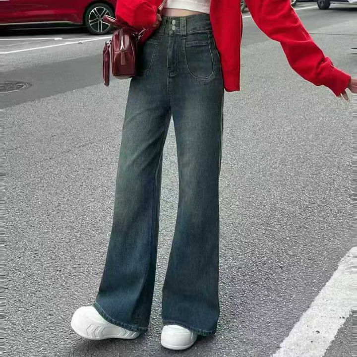 A版不贴腿微喇裤高腰直筒牛仔裤女宽松显瘦牛仔长裤 独...