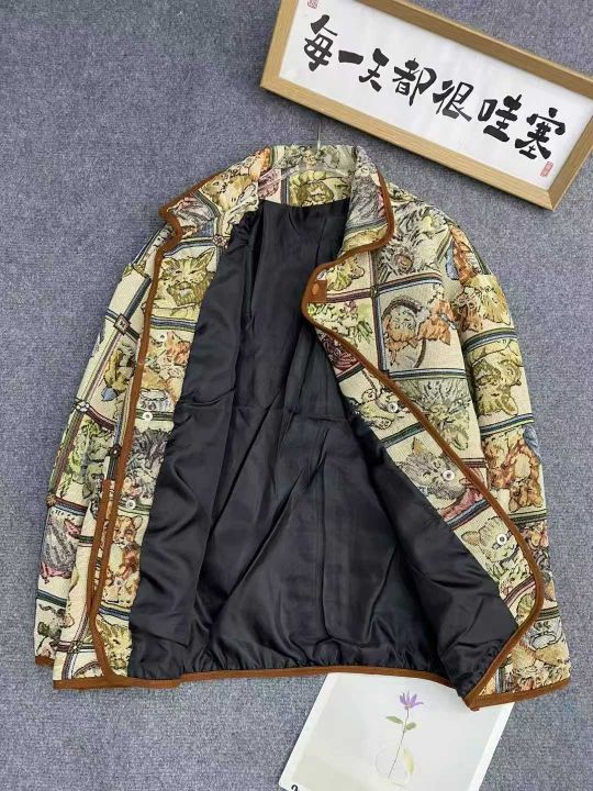 复古猫咪提花夹克外套73件,清13.8,有内衬,双口袋,...