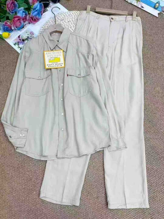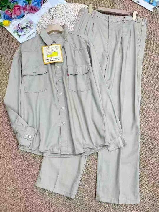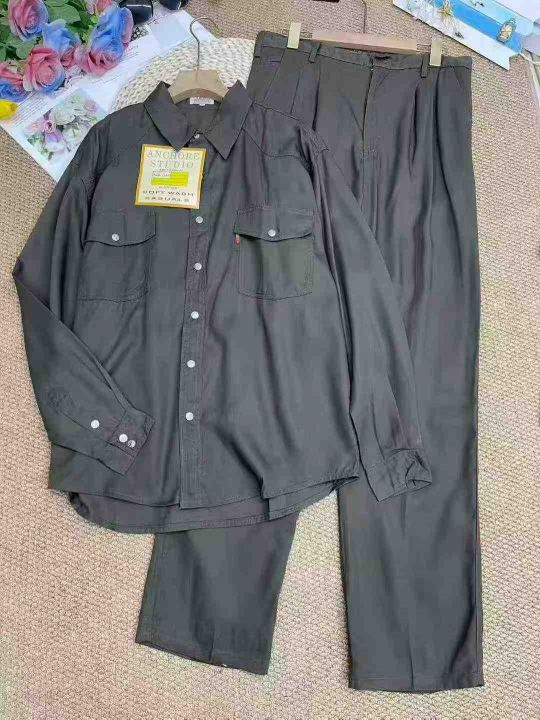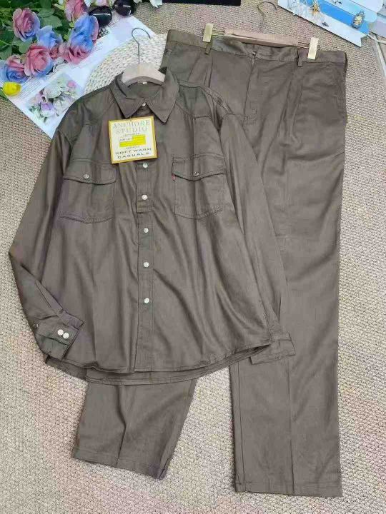男装洗水棉工装长袖衬衫套装,数量:1700套,码数:(上衣码:L-裤子码30-32)-(上衣码XL-裤子码34-36-38),有独立包装,14.9元清