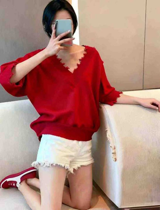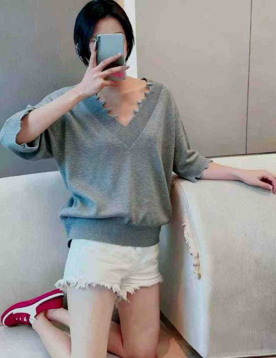 夏季新款热卖AD系列V领宽松显瘦气质个性针织短袖,独立包装,均码面料软糯舒适弹力大,宽松款,800件,全清4.9元超低价秒杀!分货加一!