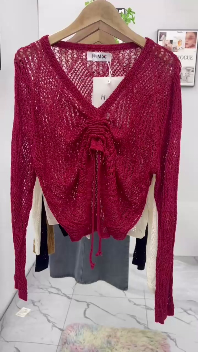 全清10.8元/清213件韩国定制早秋新款抽绳收腰针织罩衫,单款5个色,独立包...