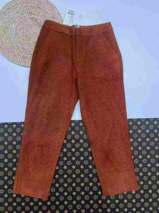 品牌女裤系列,#蔚雯,高端呢料秋冬款裤子,内里包边,两侧有口袋,数量300条左右,码数36-40码,单款棕色,独立包装吊牌,网路图供参考大概款式