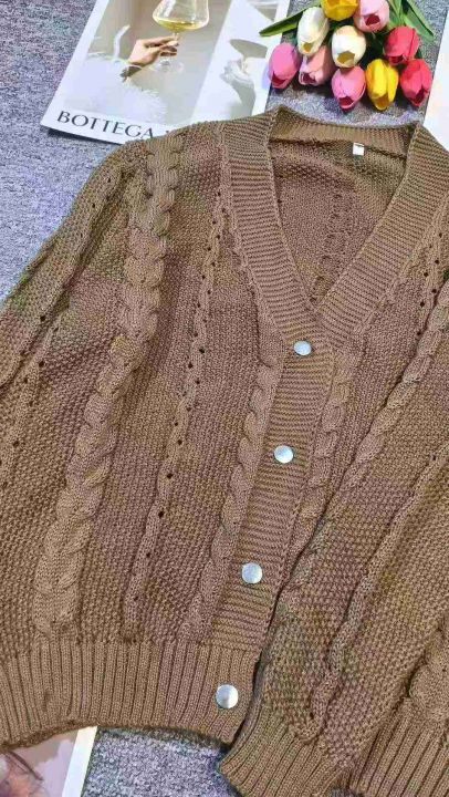 慵懒风V领设计感麻花针织开衫毛衣,[爱心]50件左右,均码,穿80-130斤,(模特图仅供参考)工厂原包原吊无瑕疵