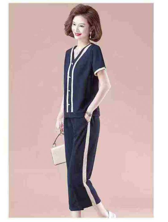 50 套夏季时尚运动套装短袖上衣女洋气休闲减龄两件套,独立包装,码数2-7,...