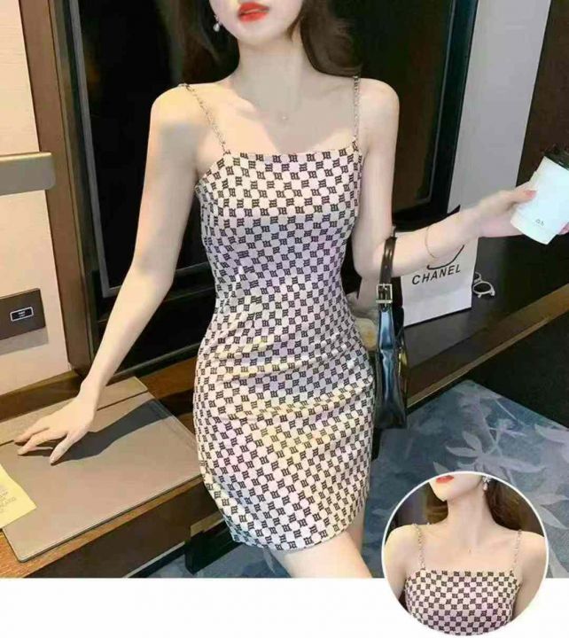 设计感链条吊带连衣裙女2025夏季新款性感气质修身显瘦格子包臀裙,271条,S-XL(1-4码,)独立包装,分货➕1(款号:0609#16)