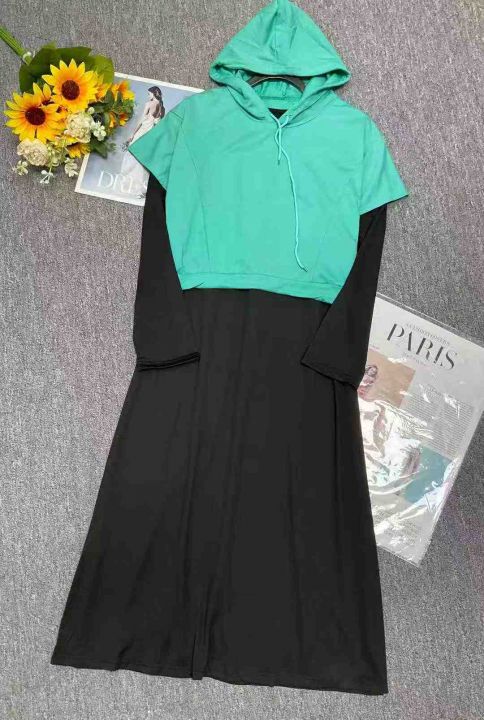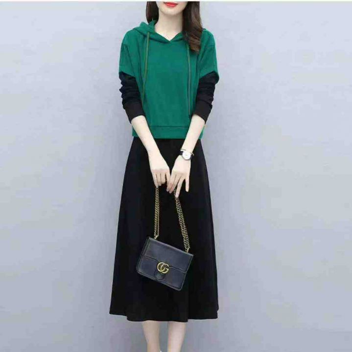 捡漏款,大码女装宽松慵懒风连帽卫衣服马甲+棉T桖长裙...