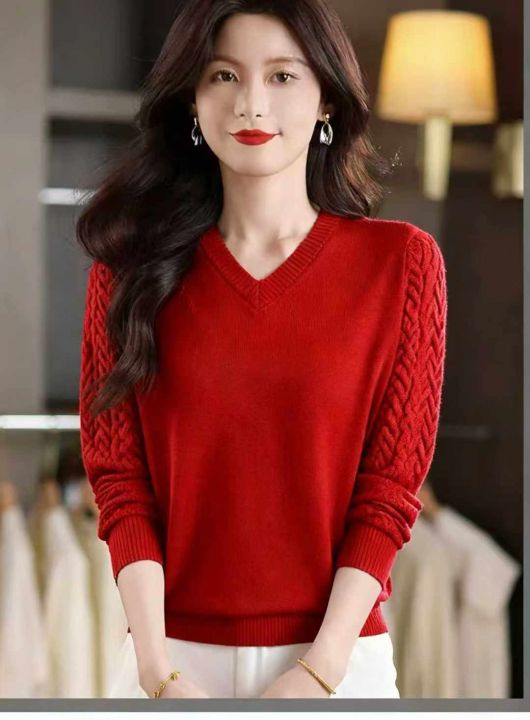 秋季新款宽松显瘦V领红色套头毛衣,独立包装,均码面料软糯舒适弹力大,114件,全清5.9元超低价秒杀!