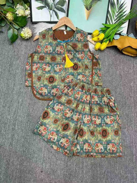 男女童夏季时尚汉服套装洋气中式国风背心短裤两件套,配送流苏,三件套,独立包装,码数80-150码,数量417套,分货加1,货号926#86