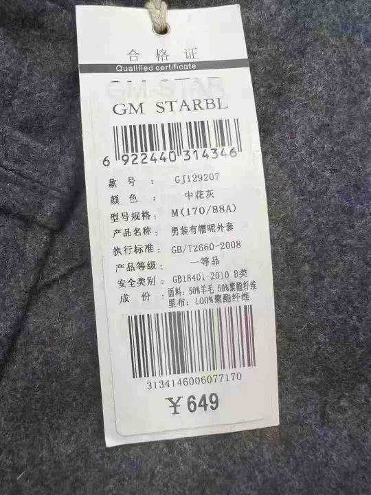 品牌男装夹克羊毛外套400件,50%羊毛含量,独立原包装...
