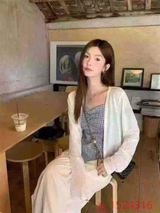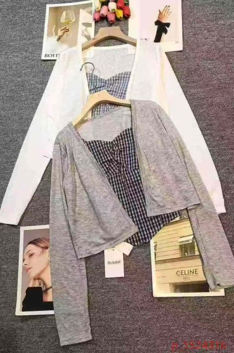 韩系不规则设计感格子吊带➕防晒开衫套装,[爱心]135套左右,灰色为主,码数S-L,穿80-130斤,万佳档口货,原包装️无瑕疵,[666]实体店品质,分货加一 _@_@