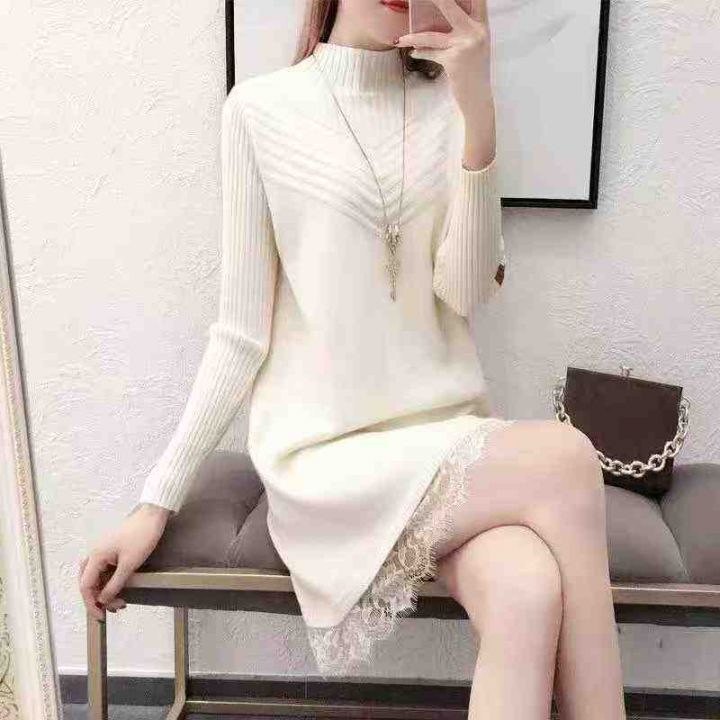 半高领打底中长款套头宽松百搭秋冬修身性感长袖针织衫毛衣连衣裙,均码,独立包装,58件,清9.5