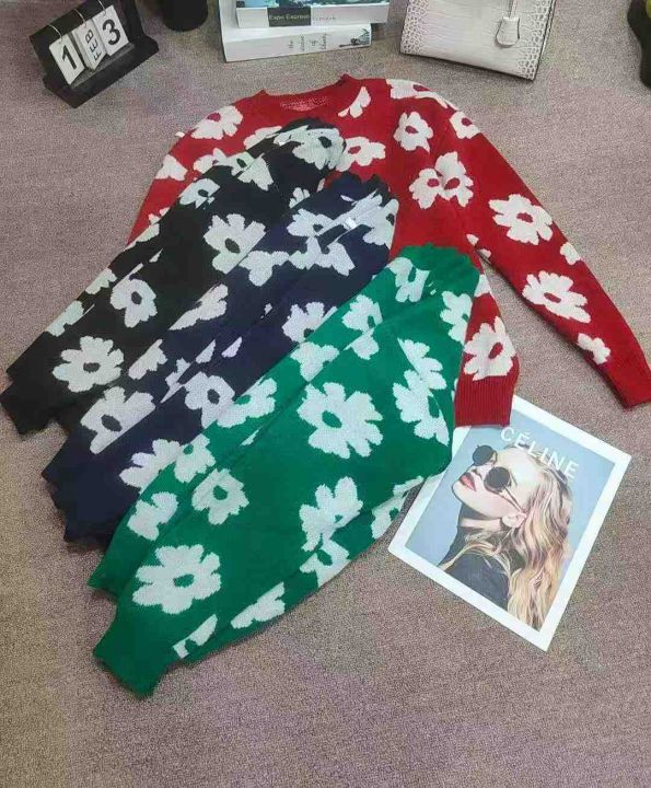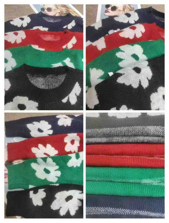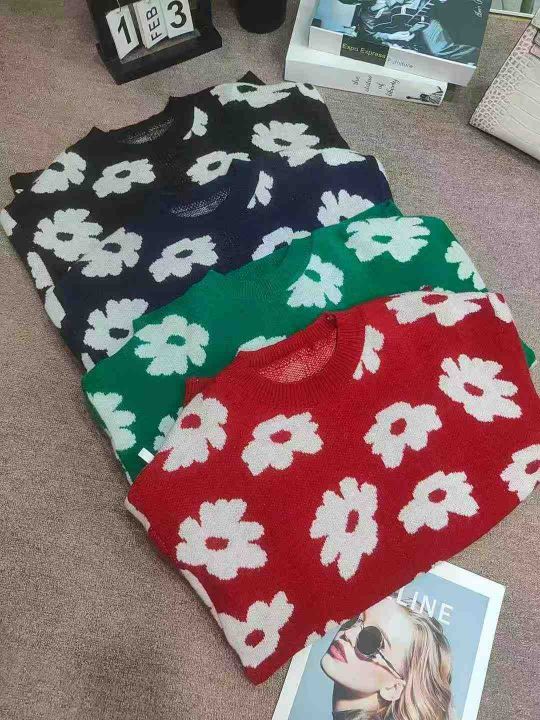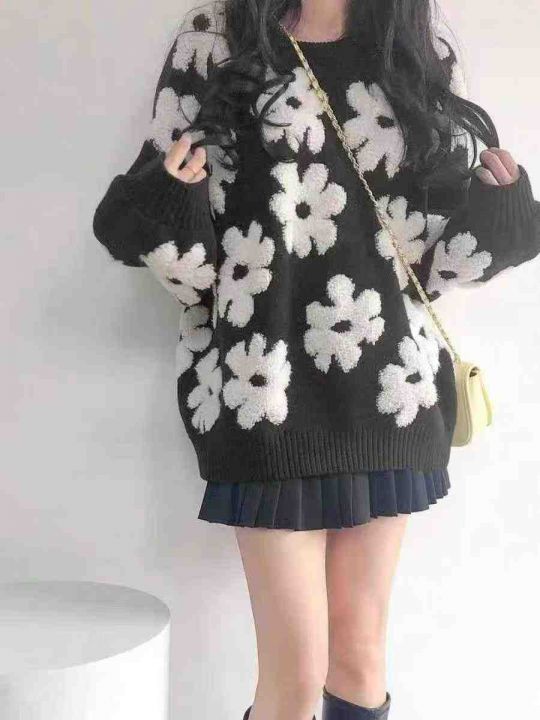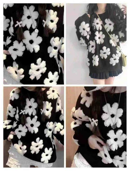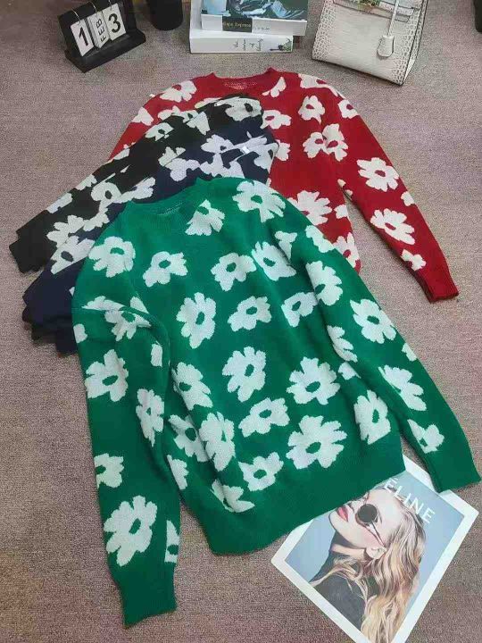 韩系气质chic风秋季女新款花朵圆领慵懒风毛衣,独立包装,均码,135件,清8.5