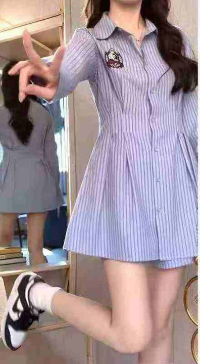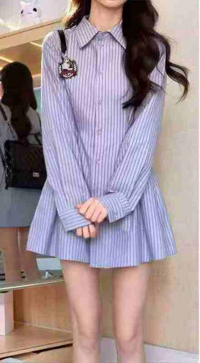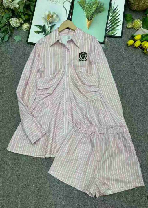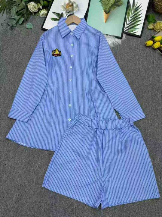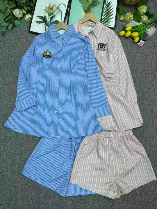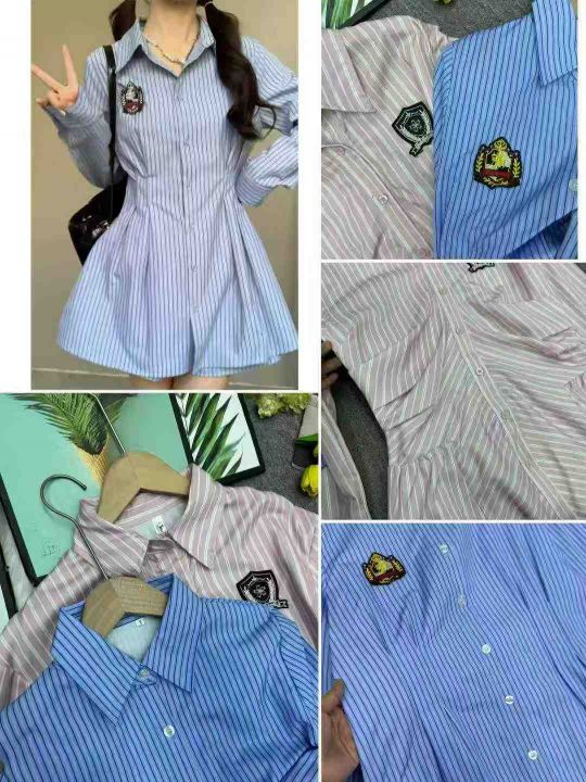捡漏42套时尚爆款polo条纹学院风长袖衬衫套短裤套装,独立包装,码数1-4码,大货蓝色为主,货号930#103