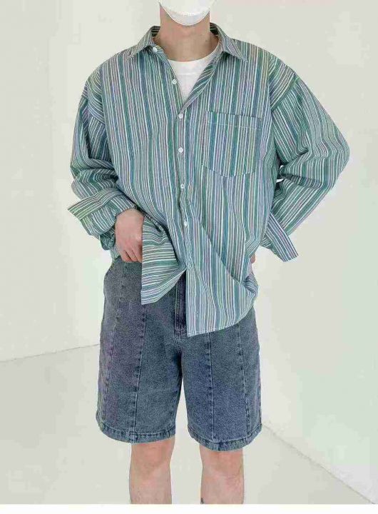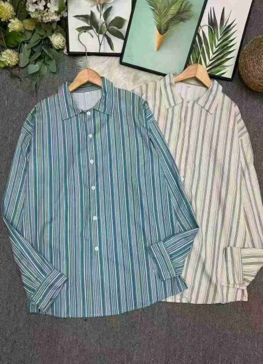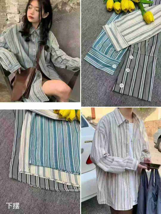 捡漏140件条纹衬衣男女情侣长袖韩版百搭宽松学生痞帅个性衬衫,独立包装,大货图一为主,码数1-5码,货号925#82