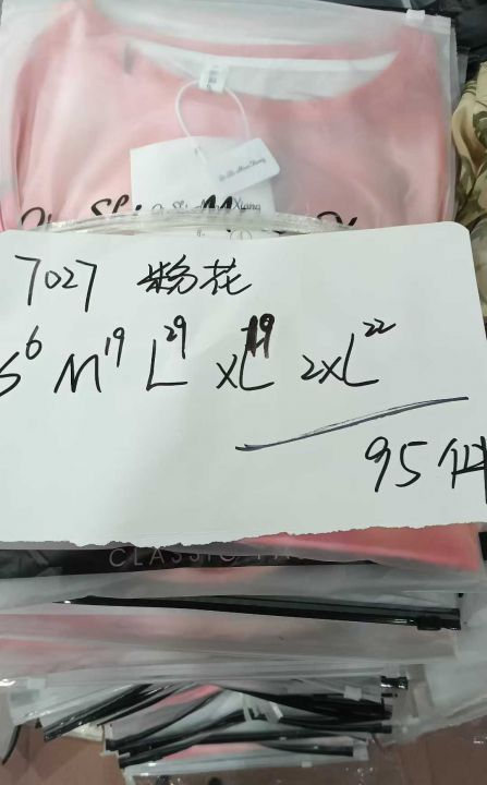 气质独特别致粉色印花显瘦五分袖T恤,95件左右,款号#7027,码数S-2XL,可穿80-140斤,工厂原包装无瑕疵,分货加一