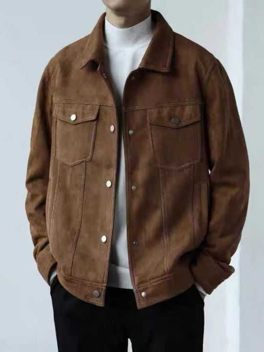 全清福利24.8元男士新款仿麂皮绒夹克潮流帅气休闲翻领...