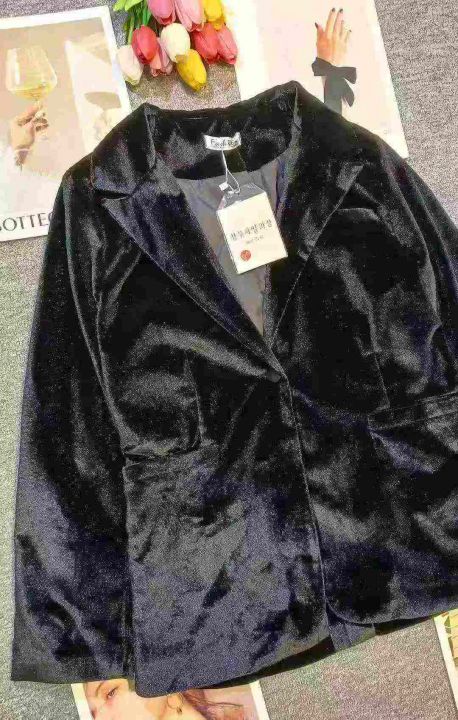 气质时尚ins金丝绒黑色百搭宽松外套,内里有垫肩,[爱心]65件左右,码数S-XL,穿80-140斤,万佳档口货,原包装️无瑕疵,[666]实体店品质
