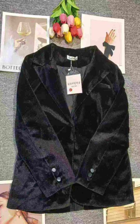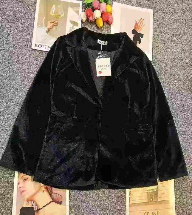 气质时尚ins金丝绒黑色百搭宽松外套,内里有垫肩,[爱心]65件左右,码数S-XL,穿80-140斤,万佳档口货,原包装️无瑕疵,[666]实体店品质