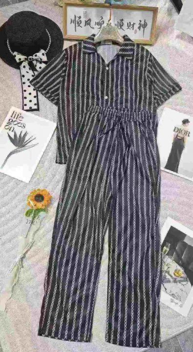 夏季潮流新款男士可外穿条纹睡衣家居服时尚套装