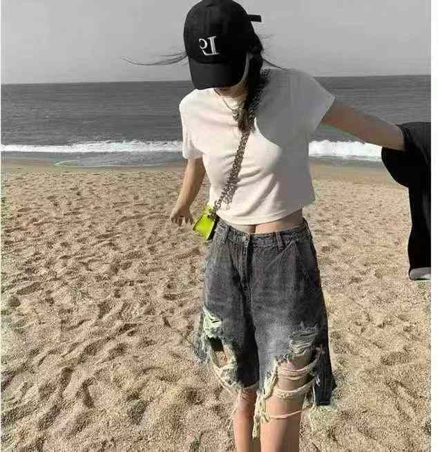夏季新款女装破洞设计款洗水棉牛仔短裤,独立包装带腰卡,码数S-2XL码,100...