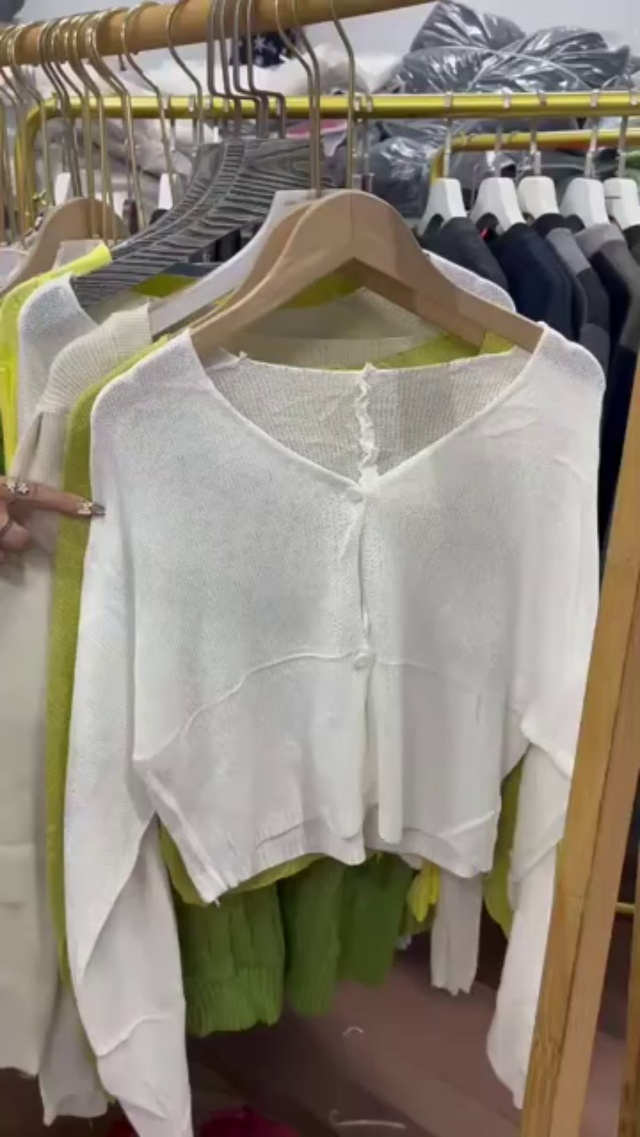 2025新款韩版百搭木耳边短款长袖针织开衫外套,独立包装,五个颜色,830件...