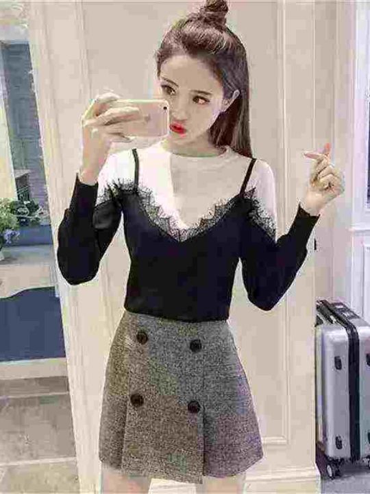 6.9元清初秋新款假两件毛衣,数量100件,单款两色,均...