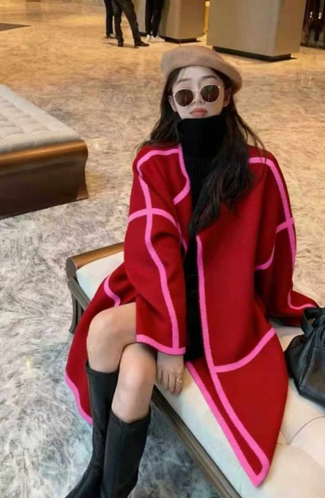 秋季新款宽松中长款慵懒风加厚针织毛衣毛衣开衫外套,...