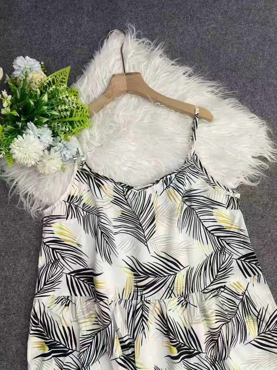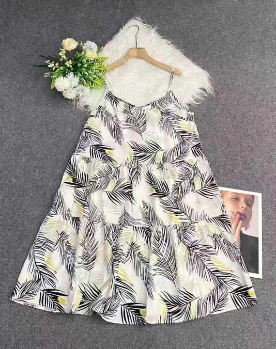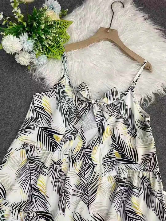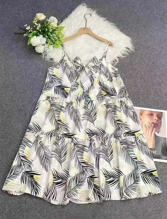 147件欧美大版印花吊带连衣裙,面料舒适,后背蝴蝶结...