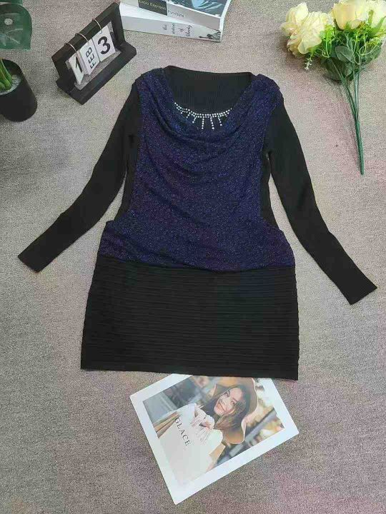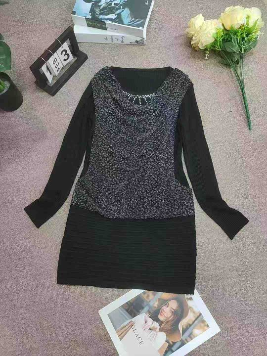 时尚堆堆领百搭设计感套头钉珠针织连衣裙,独立包装,均码,470件,清7.5,分➕1
