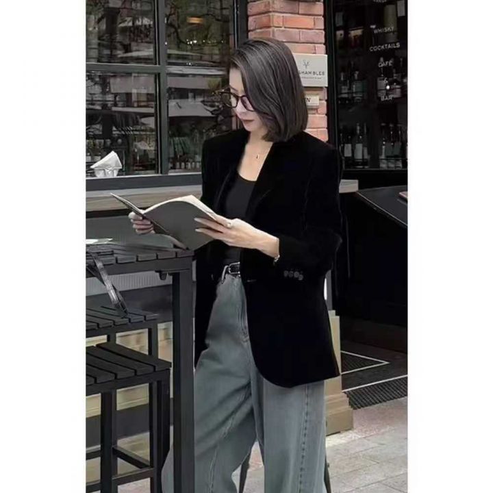 上新全清:13.8一件气质时尚ins金丝绒黑色百搭宽松外...