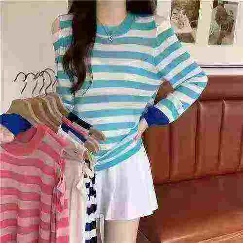 小心机露肩减龄甜美宽松条纹针织衫,数量625件,单款多色,均码,独立包装,分货➕1随机配