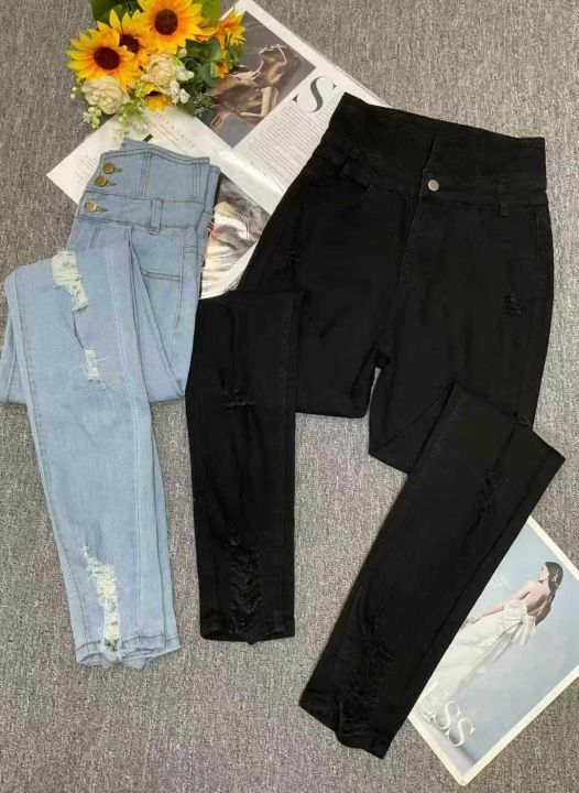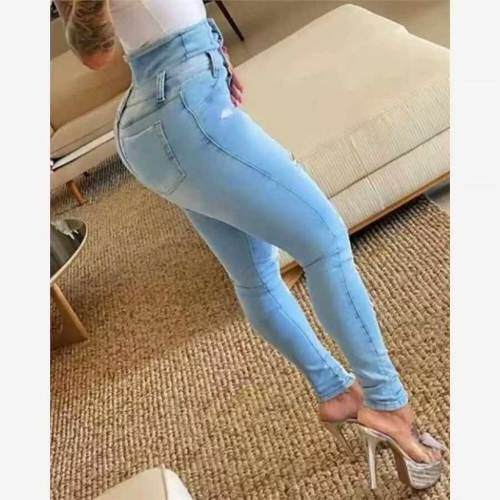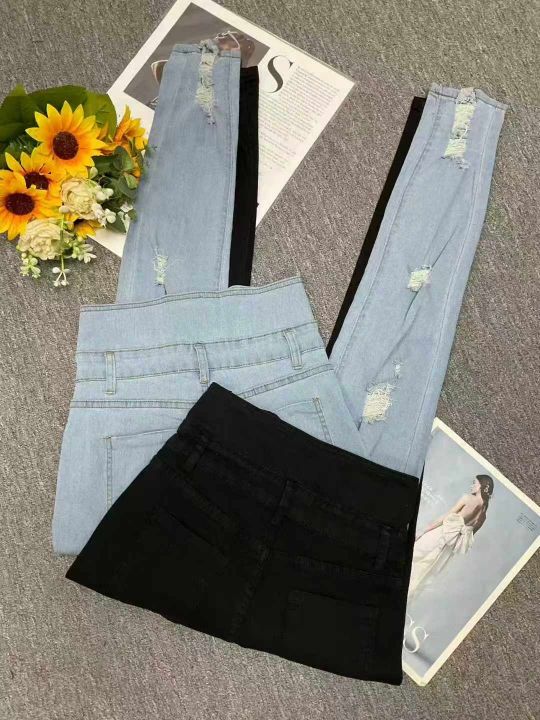 秋季新品外贸原单高弹力洗水棉破洞牛仔小脚裤,独立包...