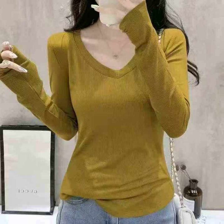 [月亮]:5.9清800件[月亮]:简约内搭外穿高弹V领长袖T...