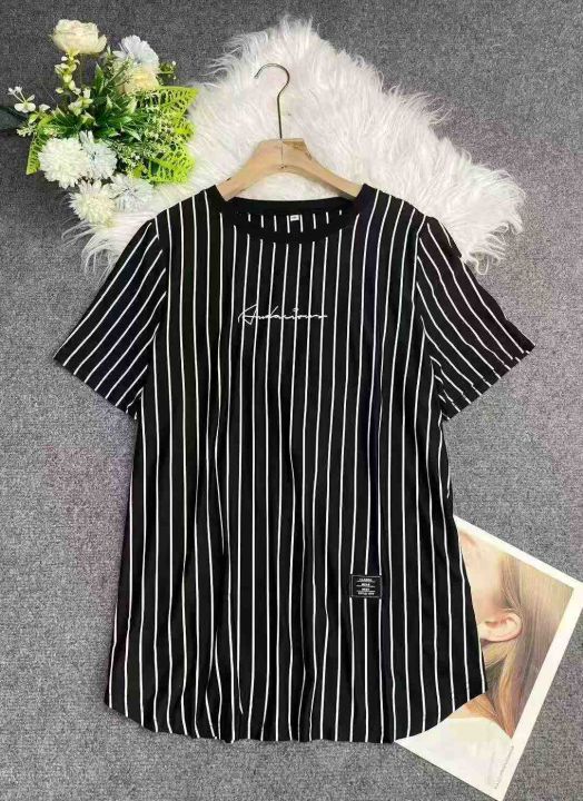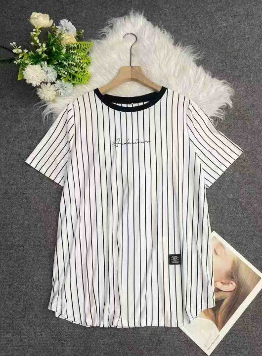 333件大版形宽松休闲男装竖条纹圆领体恤。面料柔顺舒...