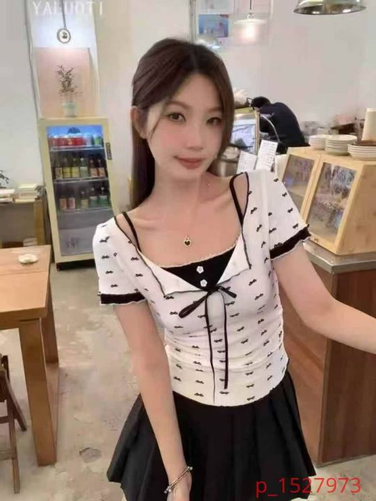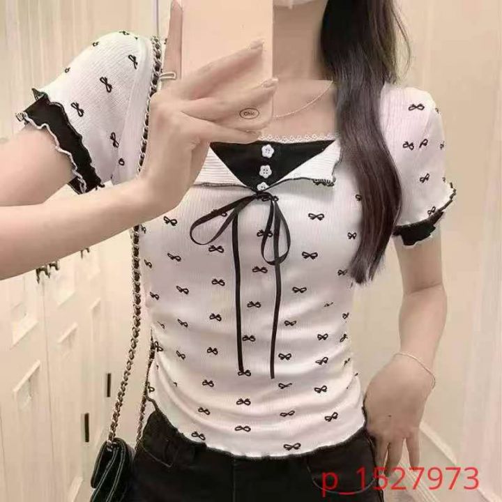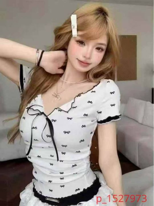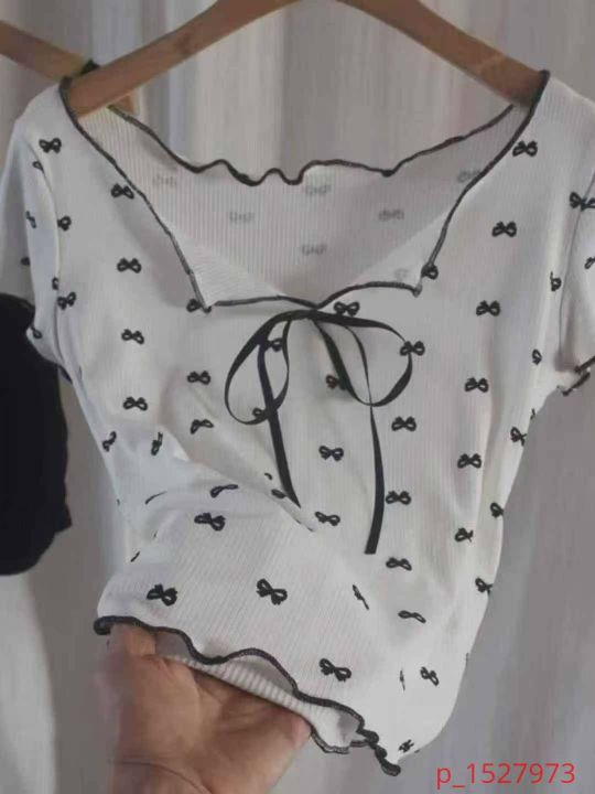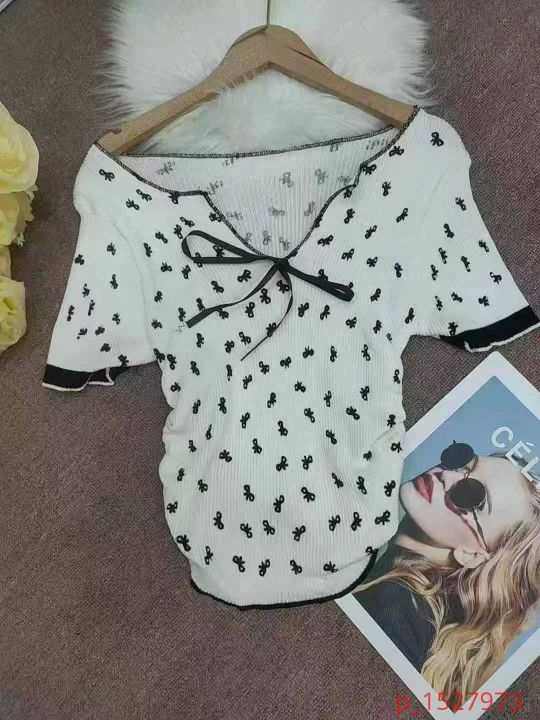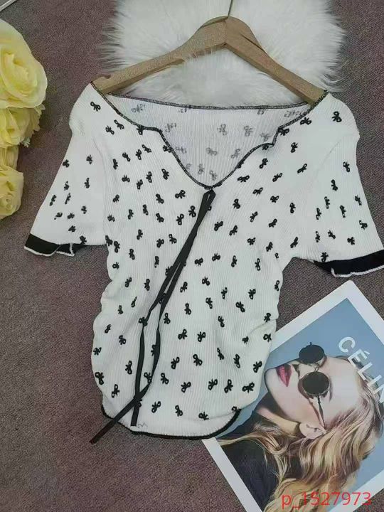 编号:[29222] ¥5.5元 女装/女士服装 上衣 夏天 短袖卫衣/T恤 辣妹褶皱系带蝴蝶针织褶皱系带蝴蝶结辣妹短袖T恤均码独立包装Spicy Girl Pleated Bow Tie Knit Short Sleeve T-shirt, Individually Packaged, One Size, 500 pieces, Clearance 5.5, Split +1تي شيرت بأكمام قصيرة مطرزة بأربطة وأقواس للفتاة الحارة، معبأ بشكل فردي، مقاس واحد، 500 قطعة، تصفية 5.5، تقسيم +1 分货加:1 库存:500件