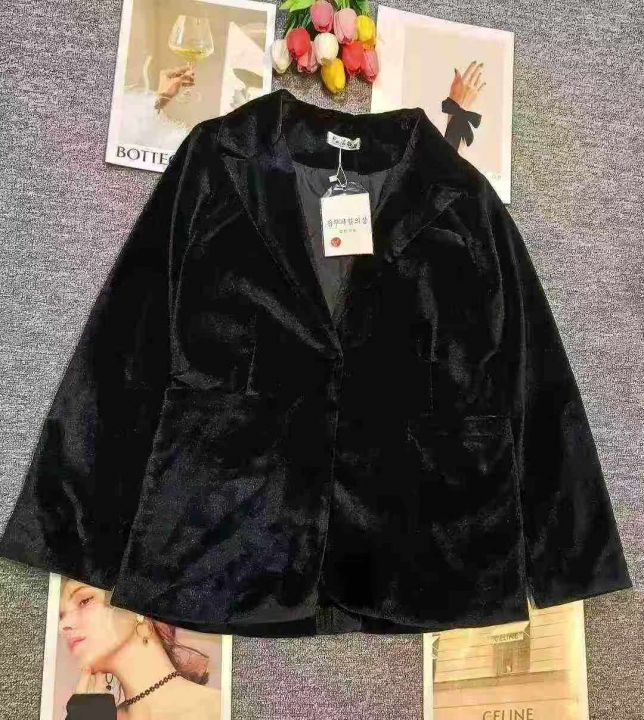 气质时尚ins金丝绒黑色百搭宽松外套,内里有垫肩,[爱心]65件左右,码数S-XL,穿80-140斤,万佳档口货,原包装️无瑕疵,[666]实体店品质