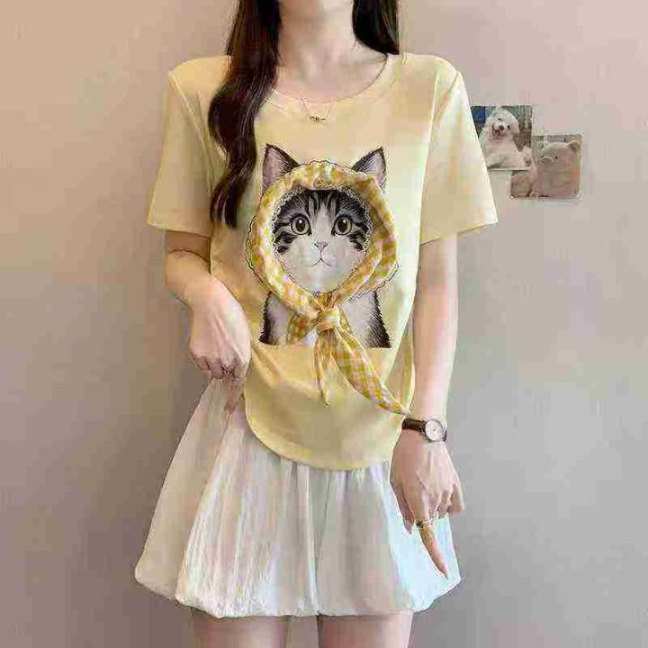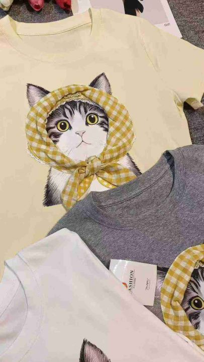 多巴胺甜美减龄小猫印花设计感T恤,[爱心]90件左右,黄色为主,码数S-XL,穿80-130斤,万佳档口货,原包装️无瑕疵,[666]实体店品质,分货加一